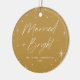 Modern holiday photo ornament featuring "Married and Bright" displayed in a hand-lettered script encircled by a border of white stars against a gold background. Personalize the front of the ornament by adding your name and the year. The back of the ornament features your wedding photo making it the perfect keepsake for your first Christmas as a married couple.