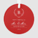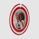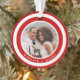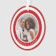 This stylish Christmas photo ornament is perfect for the newlywed couple, celebrating their very first Christmas together! It features a modern circles frame in red and white. Text templates are included on the back for personalization.