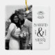 Modern Married and Merry Newlywed Bow Christmas Ceramic Ornament