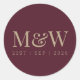 Modern Marsala Burgundy Gold Bride Groom Monogram Classic Round Sticker