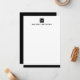 Flat, blank stationery notecards featuring your monogram initial on a black or custom colour square and the name below in a masculine font. At the bottom is a black border. All colours are customizable.
