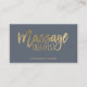 Modern massage therapist script calligraphy chic yellow gold foil on dusty blue