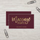 Modern massage therapist script calligraphy chic yellow gold foil on red burgundy