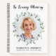 Eucalyptus moderne Sympathy Photo Funeral Livre d'or. Ce livre d'hôtes funéraire présente la verdure d'eucalyptus, votre photo, nom et dates, sur un design moderne blanc et botanique. Ce livre d'or funéraire est parfait pour le service commémoratif, la célébration de la vie et les funérailles. Eucalyptus moderne Memorial Photo Funérailles Livre d'or Carnet
