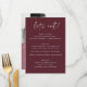 Merlot / Burgundy / Wine Wedding Menu: This modern wedding menu features handwriting text on a merlot background on the front with the couple's photo and thank you message on back. It's the perfect double-sided wedding menu to serve as both a menu and a gift.