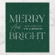 Modern Christmas wine label featuring "Merry and Bright" in white lettering and green background with subtle white dots. Personalize the green holiday wine label with your custom greeting and family name in white lettering.