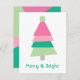 Modern Merry and Bright Minimalist Pink Green Tree Holiday Card