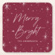 Modern Merry and Bright Script Burgundy Holiday Square Paper Coaster