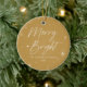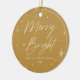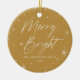 Modern Merry and Bright Script Gold Photo Ceramic Ornament