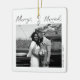 Celebrate your first holiday season together with the Modern Merry and Married Newlywed Script Christmas Ceramic Ornament. Featuring elegant script lettering and your favourite photo, this ornament adds a timeless touch to your Christmas tree. Perfect for newlyweds, it’s a heartfelt keepsake to cherish year after year.