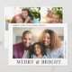 Minimal modern Christmas holiday card featuring your photo and "Merry & Bright" in stylish typography. Personalize with your name and greeting in simple typography. On the back, add two additional photos and a personalized message.