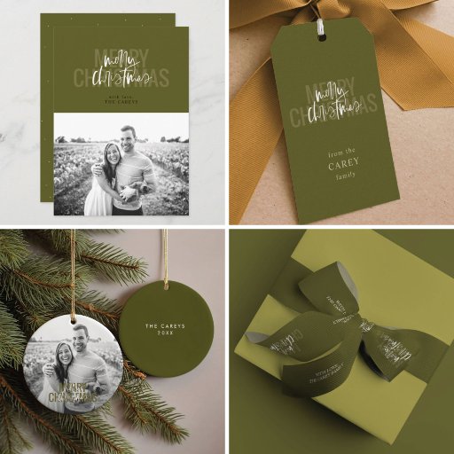 Fun, festive "Merry Christmas" lettering on the front with photo and custom text on the back, or add a second photo.