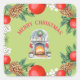 Modern Merry Christmas Red Green Fireplace Wreath Square Sticker