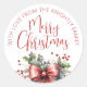 Modern Merry Christmas Script Red Bow From Name Classic Round Sticker