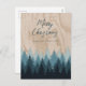 Modern Merry Christmas Script Rustic Wood Forest Holiday Postcard