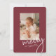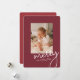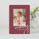 Modern minimalist one photo Christmas card features stylish white merry script and classy burgundy red colours for a simply elegant Christmas greeting card. Personalize the classic greeting with your custom family photo!