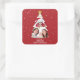 Modern Merry Christmas Tree Photo Collage Red Square Sticker