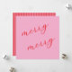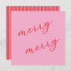 This modern pink and red Christmas card offers a stylish and cheerful way to send holiday wishes with a bold, contemporary twist. The front features a minimalist design with the phrase “merry merry” in playful red script set against a bright pink background, creating a vibrant look that feels both festive and chic. The back continues the modern holiday aesthetic with bold red and pink vertical stripes framing a message space, giving the design a polished yet joyful appearance. Perfect for spreading Christmas cheer to family, friends, or colleagues, this card captures the spirit of the season with a trendy and eye-catching colour palette that stands out from traditional holiday cards. Its balance of elegance and whimsy makes it an ideal choice for those who love a modern approach to holiday stationery. Whether used for personal greetings, family updates, or festive messages of joy, this pink and red Christmas card delivers a memorable and stylish way to celebrate the season with warmth and charm.