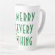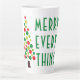 Modern and minimalist style holiday card features Christmas tree with red and green ball ornaments,  green "Merry Every Thing" text and white background.