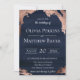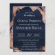 Modern and elegant trendy faux copper leaf with moody midnight blue watercolor background wedding invitation. Customize text, font style, colour and size.