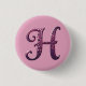 Modern Metallic Rosemaling Letter H, Pink/Purple 1 Inch Round Button