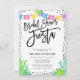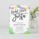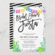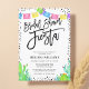 This Mexican fiesta bridal shower invitation features watercolor cactus, papel picado banners and a modern calligraphy font. Colourful and fun for a desert themed bridal shower party. The bold black stripes and confetti border make this a unique choice for your event.