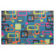 A fresh, bright, funky yet stylish retro inspired modern mid century, geometric patterned print. Pink, orange, green, teal, black and white fabric; available in a choice of fabric styles and cut to lengths to suit your sewing and craft needs.