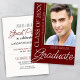 Modern Minimal 1 Photo Maroon Burgundy Graduation Invitation. Add your favourite graduation photo, personalize the trendy script and modern typography for the perfect combination of Simple and Elegant for your single photo graduation announcement keepsake. Change colours by clicking "Personalize" then scrolling down to click "Edit using design tool".