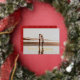 Modern minimal 1 photo red script Christmas Foil Holiday Card