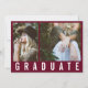 Modern minimal 3 photo graduation simple contemporary announcement card. Burgundy and white design.