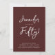 Modern Minimal 50th Birthday Script Burgundy Invitation