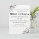 Chic black and white minimalist wedding invitation with elegant script and botanical corner illustrations, featuring fully editable couple names, wedding date, time, and venue details for a contemporary formal celebration.