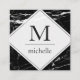 Modern Minimal Black White Marble Monogram Logo Square Business Card