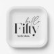 Modern minimal typography simple black and white 50th birthday party decor favour paper plate. Part of a contemporary collection.