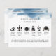Elegant modern timeline program with soft and graceful blue watercolor stain on top. Personalize napkin on dinner image with your own initials. Modern, clean and simple style. Images in elegant black, grey and taupe tones. Ability to customize information on the back for your wedding program or any welcoming message you like.