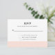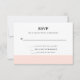 A simple, elegant wedding RSVP card that features a blush pink stripe across the bottom, and a crisp white background with bold black text.