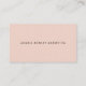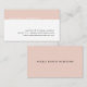 Eyecatching modern design has a minimalist feel in chic blush pink. Business cards feature your name in white on a band of blush millennial pink, with three lines of contact information on the lower right. Cards reverse to solid pale pink with your name or choice of custom text centred in modern black lettering.