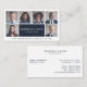 Professional and modern white and navy photo grid collage business card perfect for displaying the photos of your business team members. The design features a minimal modern 6 photo grid layout with a colour block nameplate to display your business name. There is a section along the bottom to display the website address. The reverse side is designed in minimal and modern style with business name, team member's name/title, and contact information.