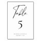 Modern Wedding Table Number sign with elegant calligraphy script in black and white. Customize it with your own names, date and table numbers.