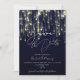 This minimalist save the date invitation design features a navy blue gold sparkling background finished with elegant classic calligraphy typography. A modern yet elegant customizable save the date design makes this a perfect wedding stationery choice for a minimalist wedding, a rustic wedding, a modern wedding, a destination wedding, and more.