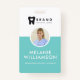 Professional, modern and minimal circle photo frame and logo vertical photo identification badge. Customize with your photo, name, title and logo. The teal colour can be changed to any colour to suit your brand, simply click personalize and click to customize further. The reverse side features logo and address.