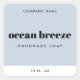 Elegant product label with your product name or scent on a light dusty blue background with a white border at the bottom. All fonts and colours are customizable. Move and resize elements with the design tool.