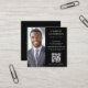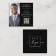 Modern, elegant, black, square business cards or personal profile cards with custom photo template and contact information. Add your logo on the back.