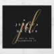 Elevate your wedding reception with these stunning, modern, minimalist, and elegant script monogram sparkling wine labels. Crafted in classic black and gold, these labels are the perfect way to personalize your wedding beverages. The elegant script monogram, featuring your initials, names, event date, and venue, adds a touch of sophistication and romance.