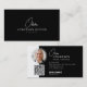 This modern and professional business card design features a sleek black and white colour scheme, creating a bold and sophisticated look. The front showcases an elegant script paired with a classic serif font for a refined and stylish branding statement. The back is divided into two colour blocks, incorporating a personal photo, contact details, and a QR code for easy digital access. The clean layout and minimalist aesthetic make this design perfect for entrepreneurs, freelancers, creatives, and professionals looking to make a strong first impression. Ideal for networking, client meetings, and business branding, this design exudes confidence and professionalism.