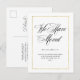 These modern and elegant new address moving announcement postcards feature classic elegant black calligraphy that says "we have moved", on a white background, with a faux gold border for a formal, professional look, or a look that is perfect to send out after your wedding to alert your guests of your new home.