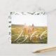 Modern minimal foliage script classy elegant joyful holiday Christmas card. Hand painted eucalyptus, minimal foliage and modern rustic rattan wreath give this holiday card a luxurious feel. In classy greens, browns and greys.
