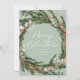 Modern minimal foliage wreath script Merry Christmas holiday Christmas card. Hand painted eucalyptus, pine tree branch, minimal foliage and modern rustic rattan wreath give this holiday card a luxurious feel. In classy sage green, browns and greys.