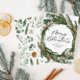 Modern minimal foliage wreath script Christmas Holiday Card