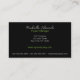A modern business card for professionals featuring a sleek black background adorned with abstract lines in shades of bright green and grey. A sophisticated minimal design that captures attention and leaves a lasting impression.
